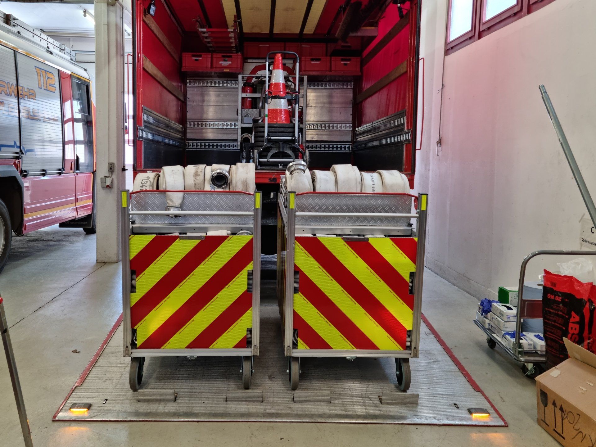 Durch eine zu der genormten Warnmarkierung zusätzlichen Beklebung der Einsatzhelme mit Namen, kann der Helm schnell und sicher der jeweiligen Einsatzkraft zugeordnet werden.