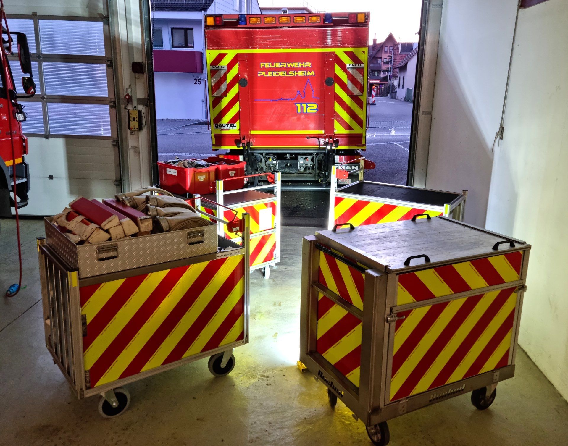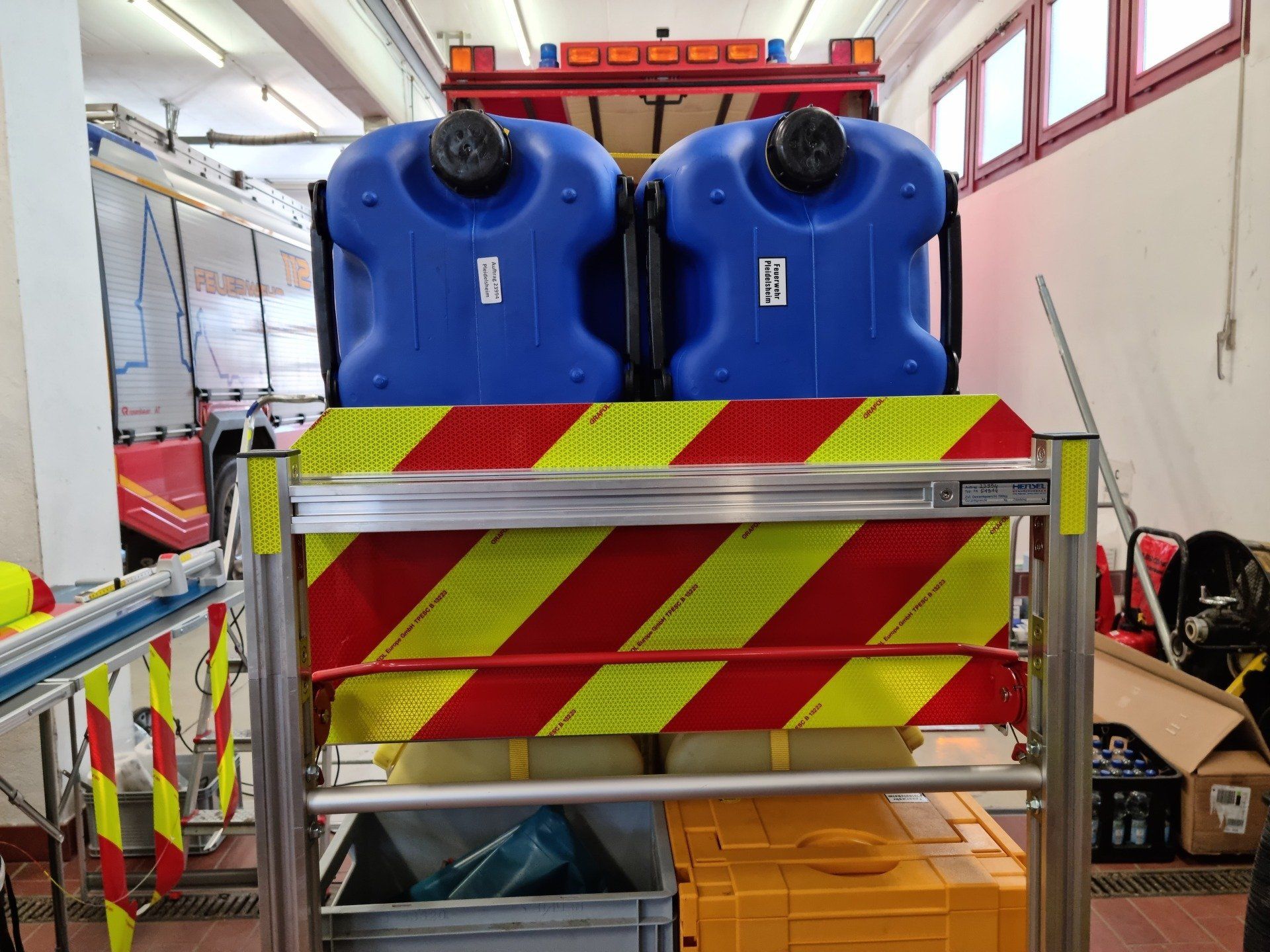 Durch eine zu der genormten Warnmarkierung zusätzlichen Beklebung der Einsatzhelme mit Namen, kann der Helm schnell und sicher der jeweiligen Einsatzkraft zugeordnet werden.